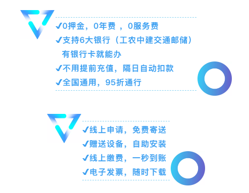 从2019年7月1日起,严格落实对ETC用户不少于5%的车辆通行费基本优惠政策,并实现对通行本区域的ETC车辆无差别基本优惠。到2019年年底,各省(区、市)汽车ETC安装率达到80%以上,通行高速公路的车辆ETC使用率达到90%以上,高速公路基本实现不停车快捷收费。