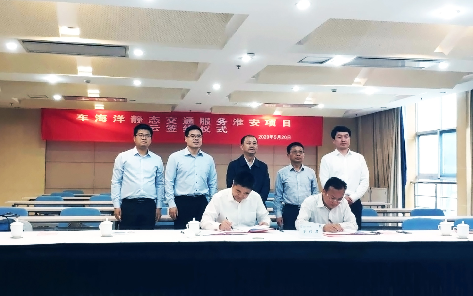 今年5月,中共淮安市市委相关部门和领导与车海洋举行了“互联网+静态交通服务”新基建项目线上签约仪式。