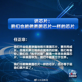 5月21日上午9点,任正非在华为总部接受中央广播电视总台记者采访回应热点问题。