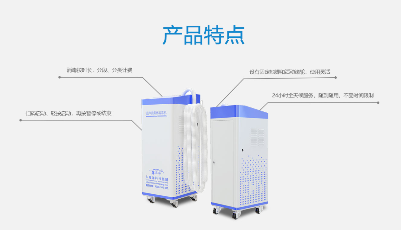 应广大人民广泛而急切的消毒需求,车海洋科技集团把之前服务医院120救护车专用的消毒机改良并民用化,推出了“车海洋超声波雾化消毒机”作为无接触式智能自助消毒机,可作为车辆出行安全和人们日常生活空间消毒的防疫利器。